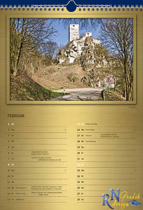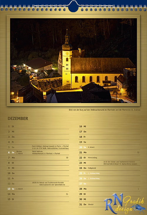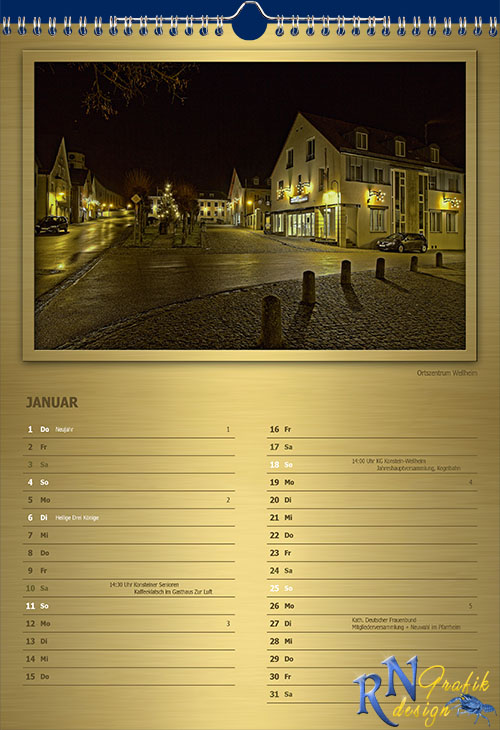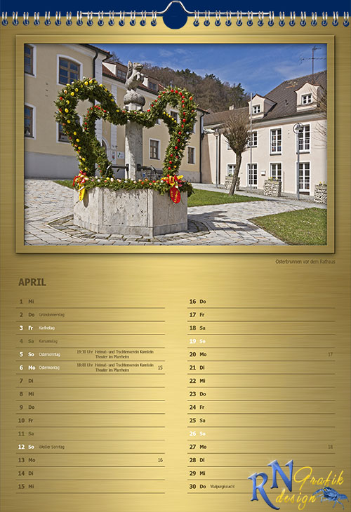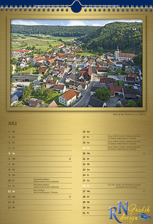 Edler Fotokalender mit aktuellen und interessanten Motiven aus der Marktgemeinde Wellheim im Urdonautal