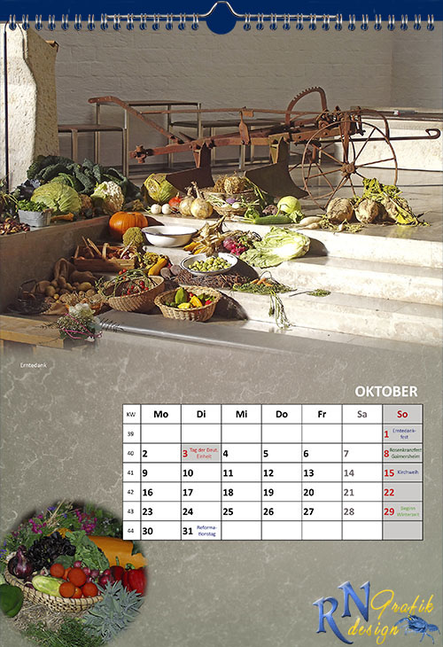 --> Kalendarium mit eingetragenen Feier- und Sondertagen,