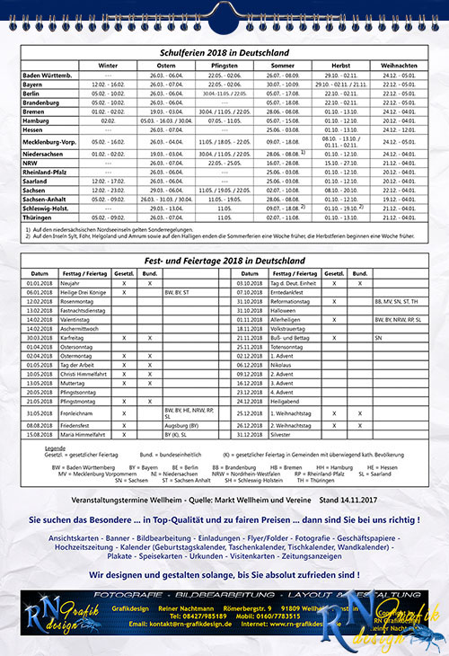 !! Auch in diesem Jahr wieder mit den Wellheimer Veranstaltungsterminen ( Stand 14.11.2017) !!!